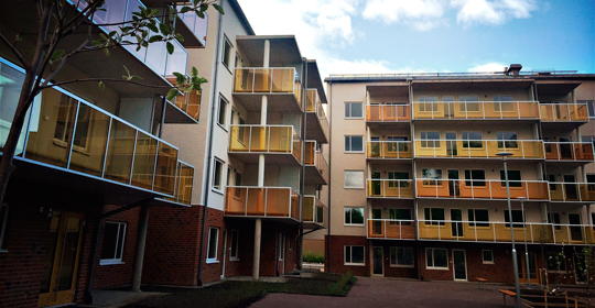 Fullständig renovering av 172 lägenheter samt påbyggnation av 20 lägenheter på befintliga huskroppar. Ombyggnad av badrum och kök samt nya ytskikt i samtliga lägenheter. Byte av vatten, värme och avloppsinstallationer. Byte av el samt installation av 3-fas. Byte av fönster och fönsterdörrar, diverse fasadjusteringar. Utförande av balkonger på fasad mot söder samt breddning av fönsterdörr. Uppdraget utfördes som en totalentreprenad och stod klart hösten 2016. Se filmen